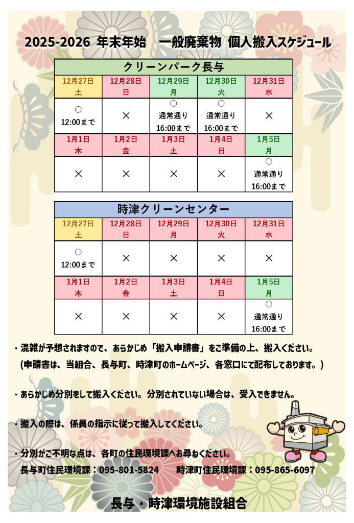年末年始における一般廃棄物搬入のお知らせ